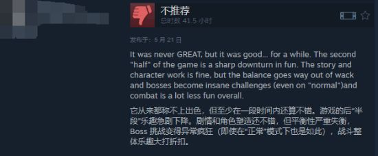 据了解,玩家们主要的不满之处在于,尽管游戏机制有趣,但故事剧情因人而异。有人觉得无聊甚至拖沓,也有人认为有趣。多篇评价指出,游戏节奏欠佳,后期乐趣大幅降低。